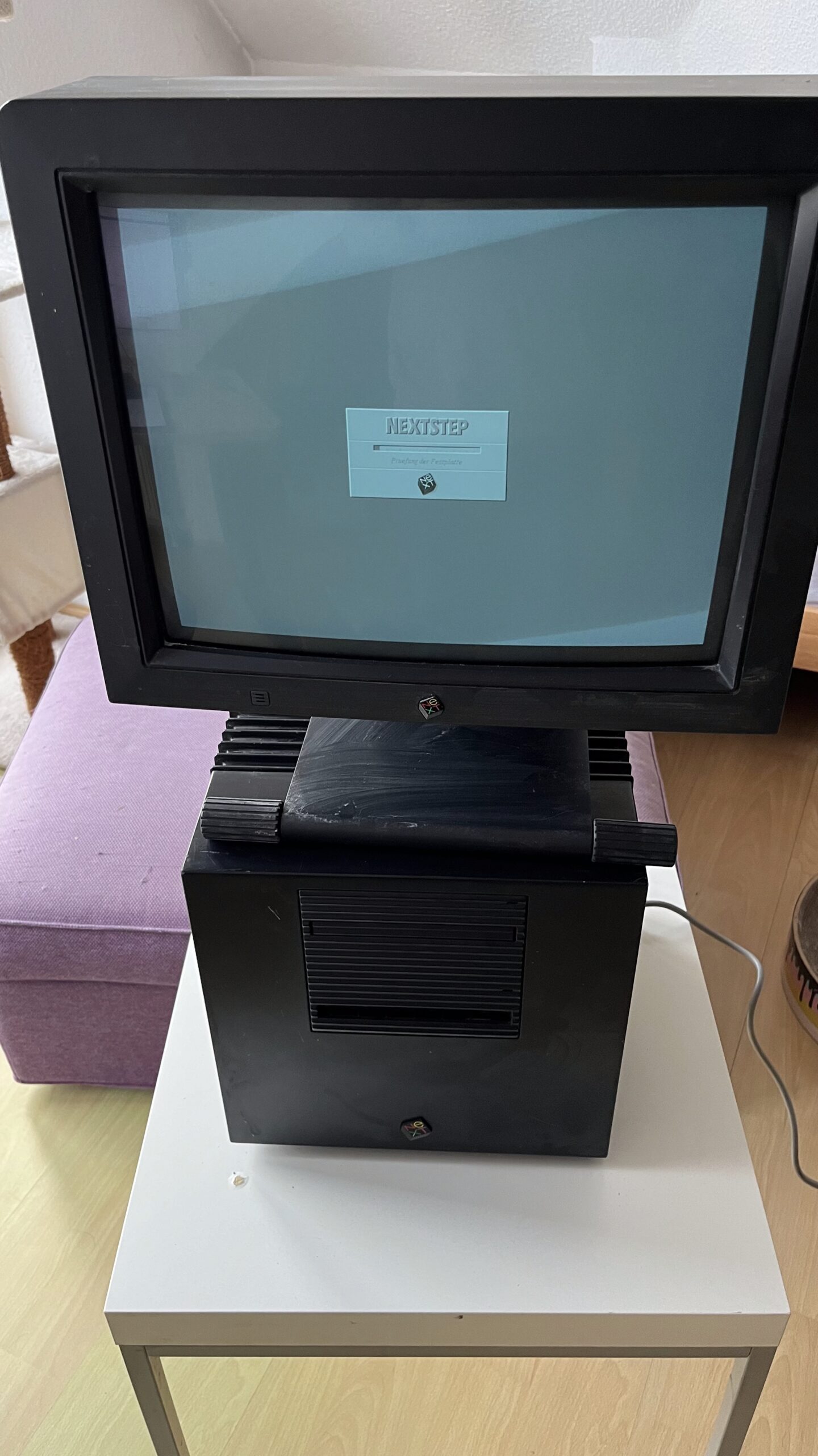 Der NeXT-Würfel – ein wunderschöner Computer! Neben dem Cube besitze sich auch den Monitor zum Cube, eine NeXT Station, sowie einen NeXT Drucker und Dokumentation.